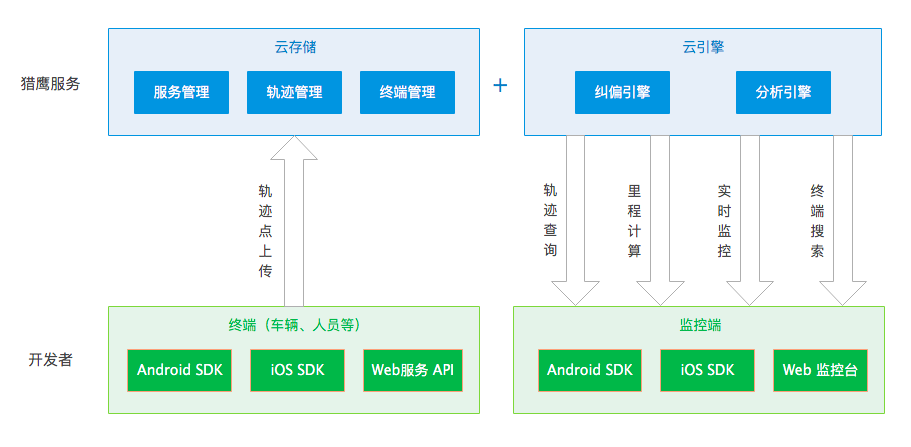 猎鹰提供可嵌入智能设备的Android、iOS SDK以及Web服务API进行轨迹上传,支持单点/多点多种上传形式。